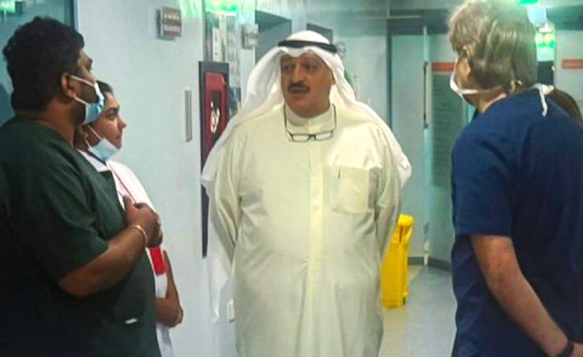 قام وزير الصحة د.أحمد العوضي بزيارة إلى مستشفى الصباح للاطمئنان على الحالة الصحية لأحد منتسبي الجهات الأمنية الذي أدخل إلى المستشفى في وقت سابق إثر إصابة تعرض لها أثناء تأدية واجبه الوطني في أحد المواقع داخل دولة الكويت نتيجة الاعتداءات التي شهدتها البلاد.