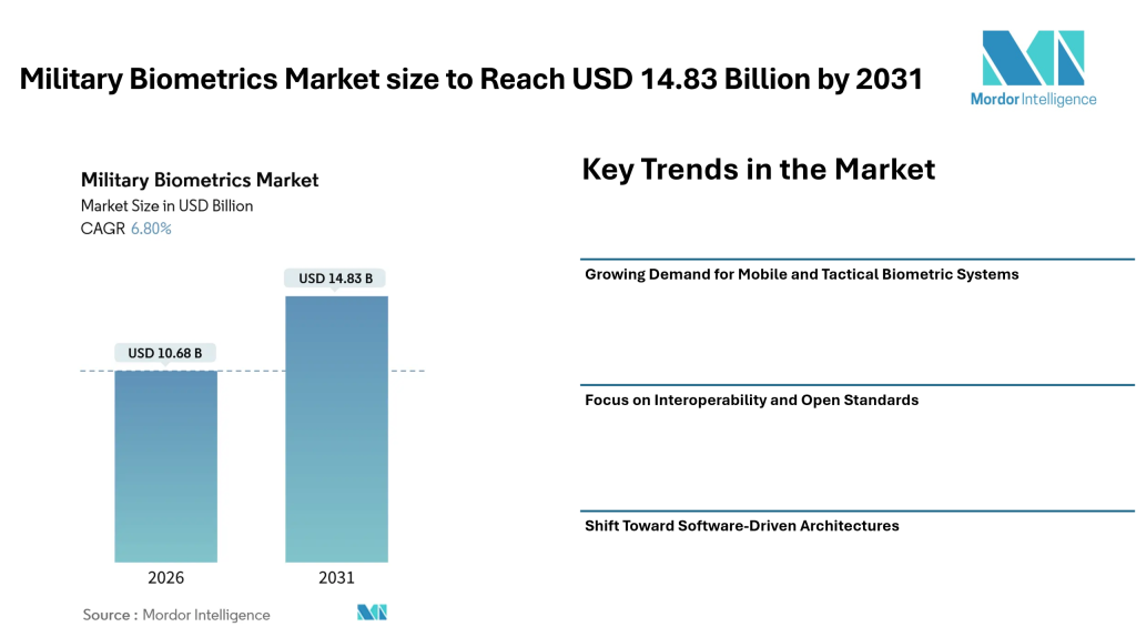 According to Mordor Intelligence, the military biometrics market size is expected to reach USD 10.68 billion in 2026 and grow further to USD 14.83 billion by 2031, reflecting consistent market growth over the forecast period. This expansion is supported by rising concerns around cross-border threats, irregular warfare, and the need for secure authentication systems in sensitive operations.